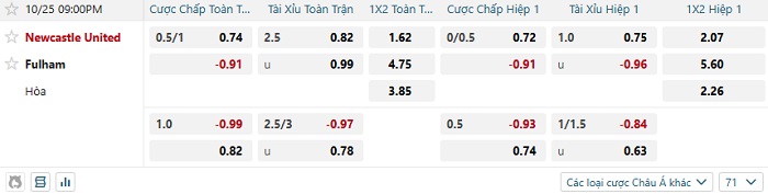 Soi kèo châu Á, kèo Newcastle vs Fulham