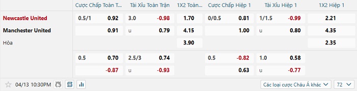 Soi kèo châu Á, kèo Newcastle vs Man Utd