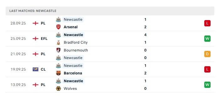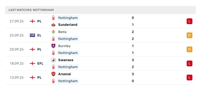 Phong độ gần đây Newcastle  vs Nottingham Forest
