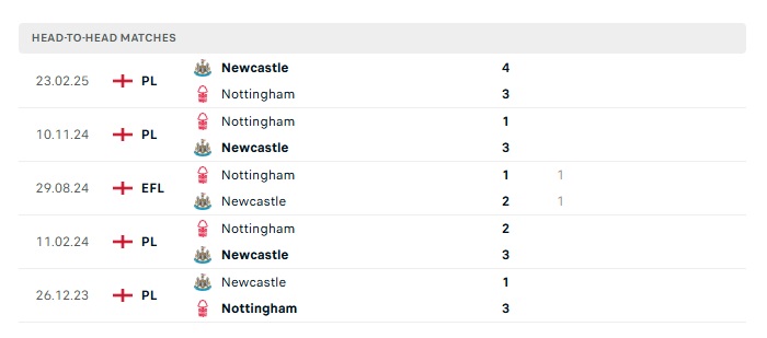 Lịch sử đối đầu Newcastle vs Nottingham Forest