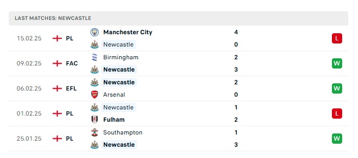- Phong độ gần đây Newcastle
