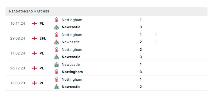 Lịch sử đối đầu Newcastle vs Nottingham Forest
