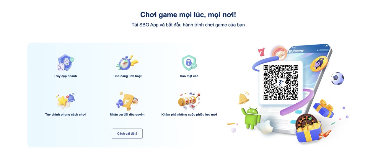 Nhờ vào việc xây dựng hệ thống game 2D 3D sống động song hành với thiết kế sắc sảo, nhà cái SBOTOP cung cấp cho người chơi của mình hệ thống Slots Game đa dạng như: Candy Crush, Bắn Cá, Đào Vàng, Kim Cương…. Thao tác đặt cược dễ dàng cùng quy tắc trò chơi đơn giản giúp đây trở thành lựa chọn giải trí hiệu quả cho cược thủ song hành với việc trực tiếp tìm kiếm lợi nhuận.