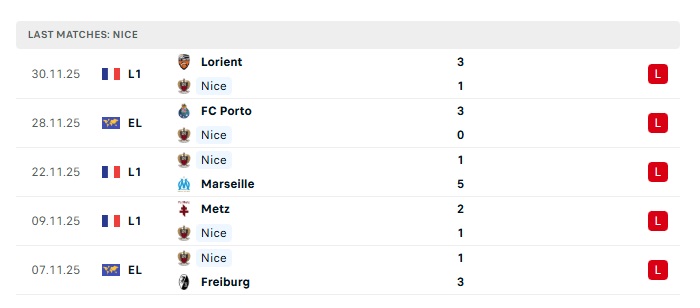 - Phong độ gần đây Nice