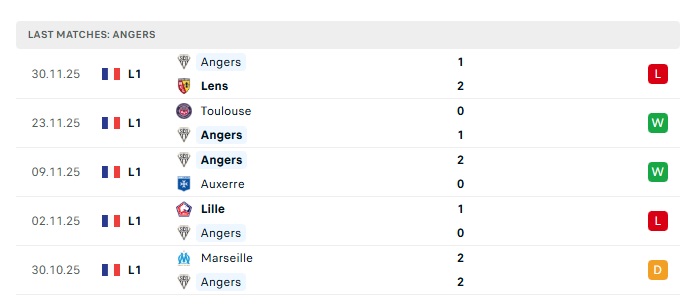 - Phong độ gần đây Angers