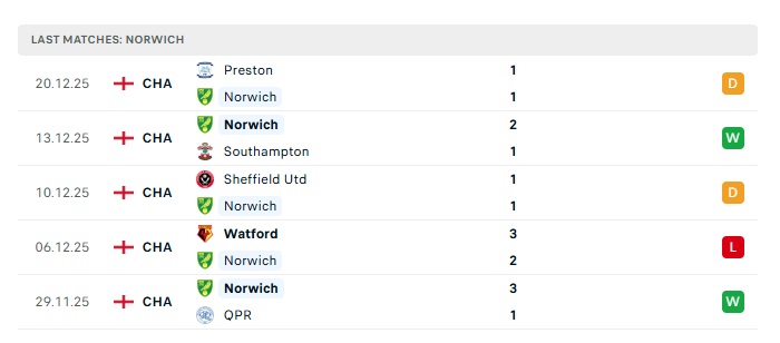 - Phong độ gần đây Norwich