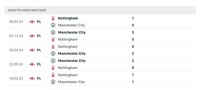 Lịch sử đối đầu Nottingham vs Man City