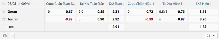 Bảng tỷ lệ kèo bóng đá hôm nay Oman vs Jordan