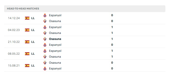 - Kèo tỷ số H2 Osasuna vs Espanyol: 0-0