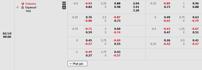 Soi kèo châu Á, kèo Osasuna vs Espanyol