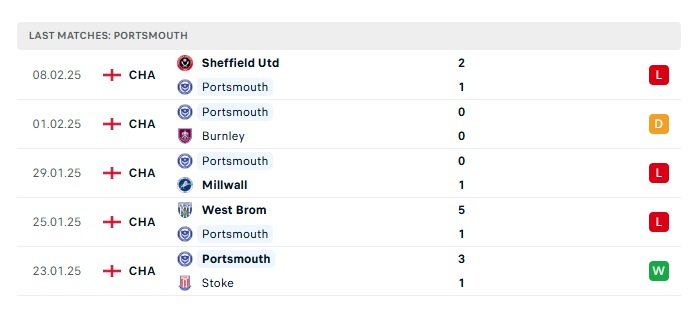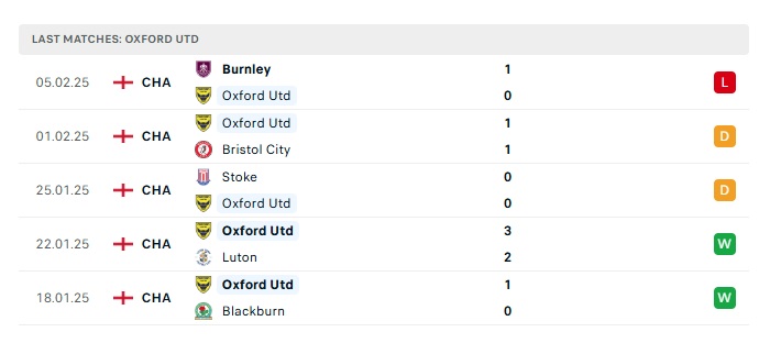 Phong độ gần đây Oxford Utd vs Portsmouth