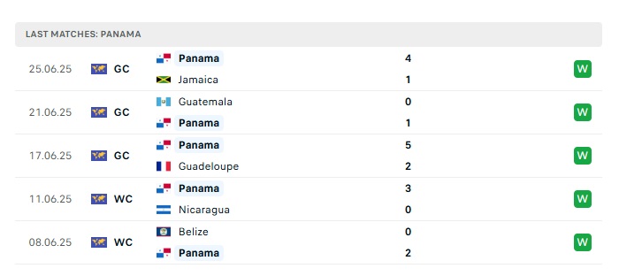 • Phong độ gần đây Panama