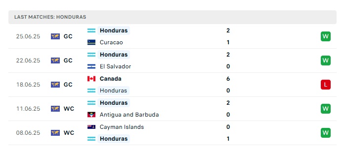 • Phong độ gần đây Honduras