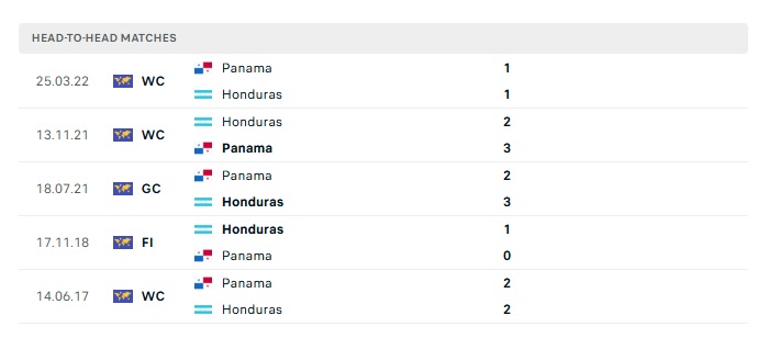 Lịch sử đối đầu Panama vs Honduras