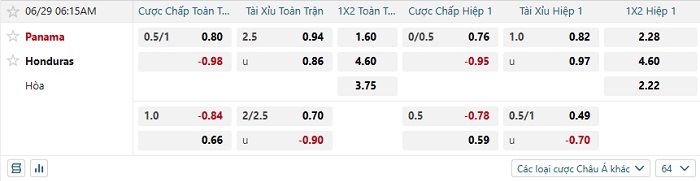 Soi kèo châu Á, kèo Panama vs Honduras