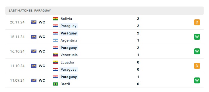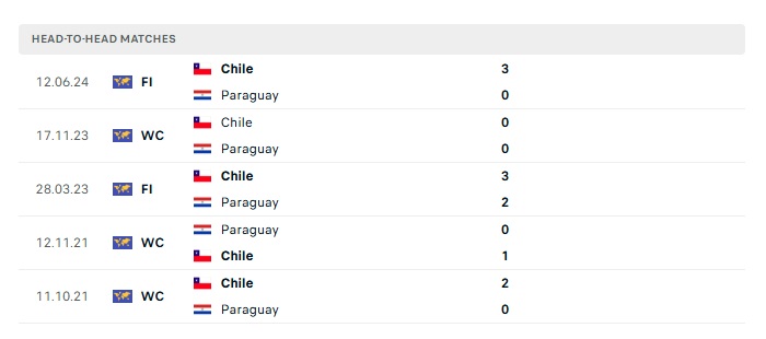 Ai cũng biết rằng phong độ thi đấu thời gian qua của Chile đang hoàn toàn thua kém so với Paraguay. Cụ thể thì đội chủ nhà hiện tại đã có cho mình 3 hòa và 3 chiến thắng trong 6 trận đấu gần nhất. Trong khi đó thì Chile đang có 4 thua, 1 hòa và 2 thắng (1 trong số đó là giao hữu) ở 7 trận gần nhất. Thế nên việc đội chủ nhà có 3 điểm trọn vẹn là việc quá dễ hiểu.