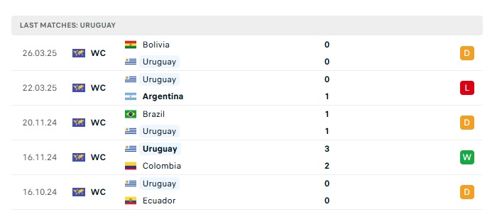 - Phong độ gần đây Uruguay