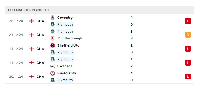 - Phong độ gần đây Plymouth Argyle