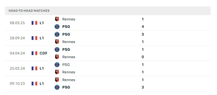 - Kèo tỷ số H2 PSG vs Stade Rennais: 2-1