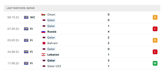 • Phong độ gần đây Qatar