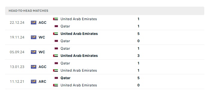 Lịch sử đối đầu Qatar vs UAE