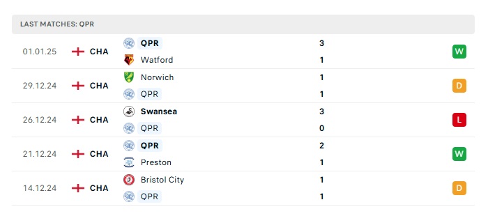 Phong độ gần đây QPR vs Luton