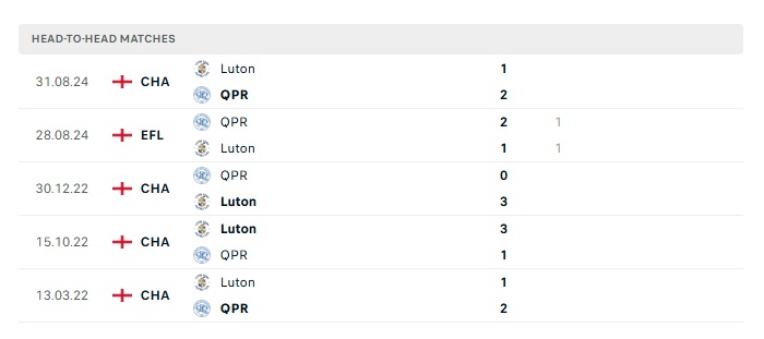 Lịch sử đối đầu QPR vs Luton