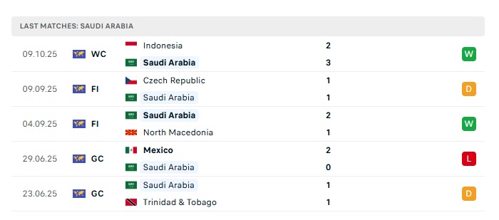 • Phong độ gần đây Ả Rập Xê Út