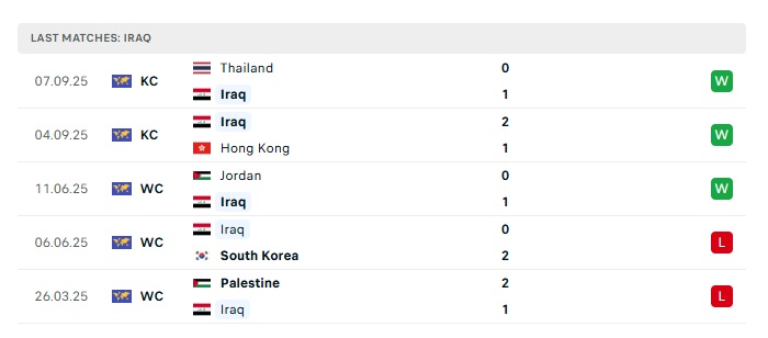 • Phong độ gần đây Iraq