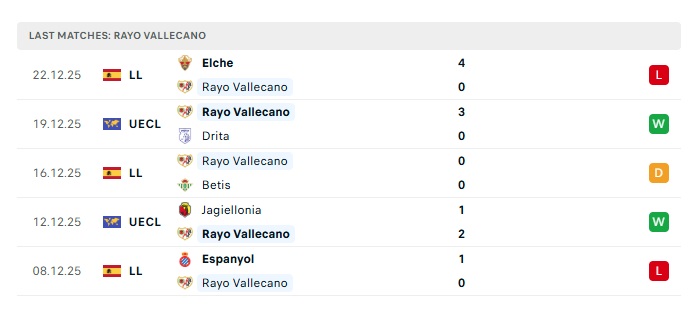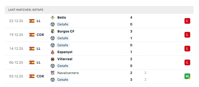 Phong độ gần đây Rayo Vallecano vs Getafe
