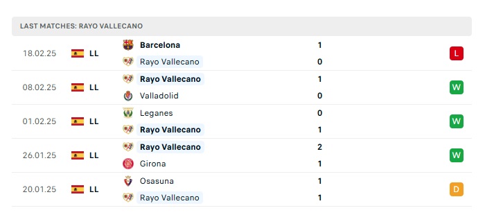 - Phong độ gần đây Rayo Vallecano