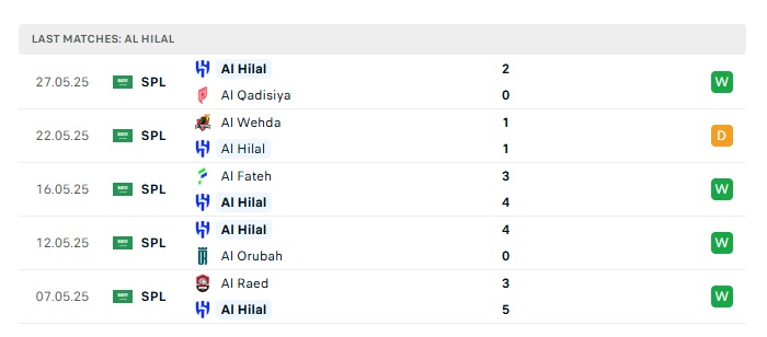 • Phong độ gần đây Al Hilal