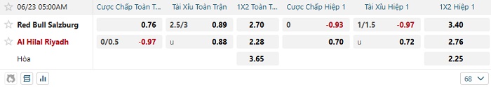 Bảng tỷ lệ kèo nhà cái RB Salzburg vs Al Hilal