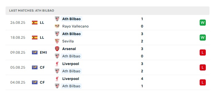 • Phong độ gần đây Athletic Bilbao