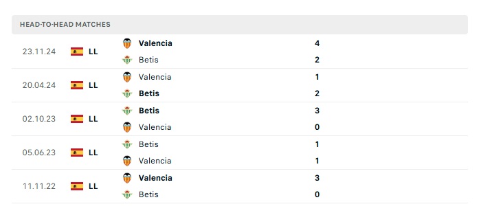 - Kèo tỷ số H2 Real Betis vs Valencia: 0-0