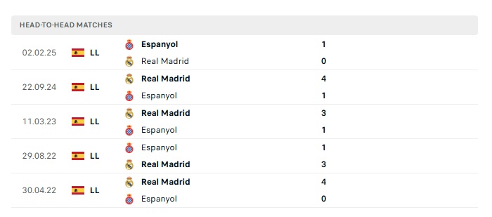 Lịch sử đối đầu Real Madrid vs Espanyol