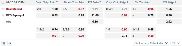 Soi kèo châu Á, kèo Real Madrid vs Espanyol