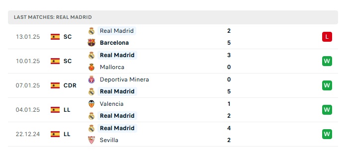 • Phong độ gần đây Real Madrid
