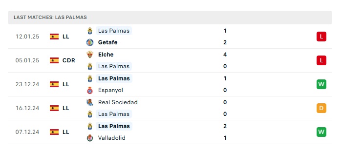 • Phong độ gần đây Las Palmas