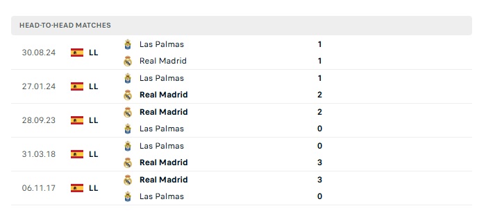 Lịch sử đối đầu Real Madrid vs Las Palmas
