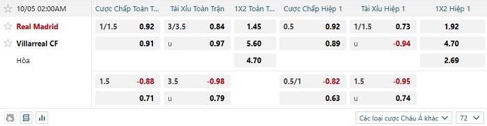 Soi kèo châu Á, kèo Real Madrid vs Villarreal