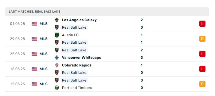 - Phong độ gần đây Real Salt Lake