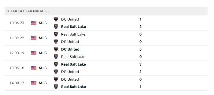 Lịch sử đối đầu Real Salt Lake vs D.C United