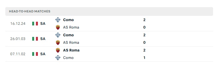 - Kèo tỷ số H2 Roma vs Como: 2-0