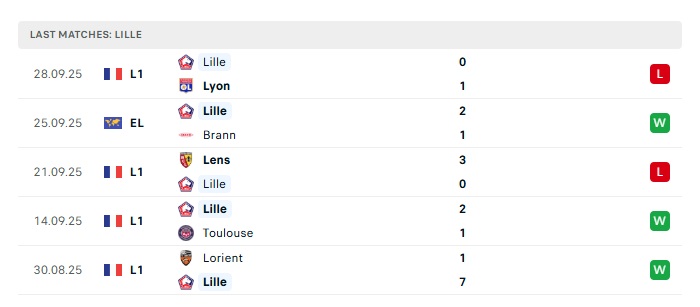 - Phong độ gần đây Lille