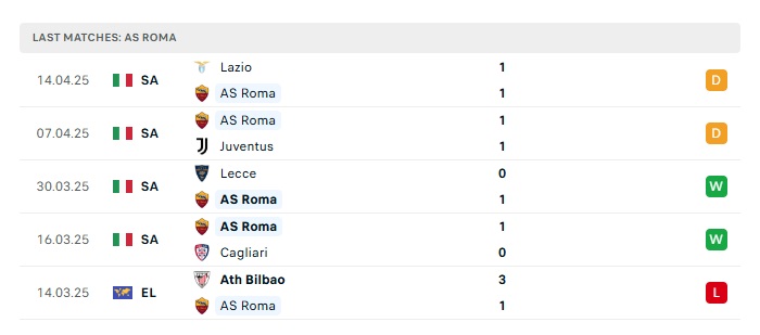 - Phong độ gần đây Roma