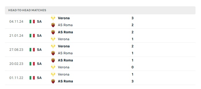 Phong độ gần đây Roma vs Verona