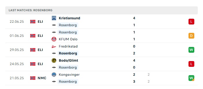 - Phong độ gần đây Rosenborg