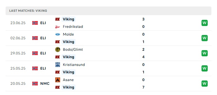 - Phong độ gần đây Viking