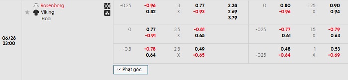 - Kèo tỷ số H2 Rosenborg vs Viking: 0-1